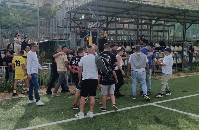 עם שריקת הסיום פרצה מאומה רבתית במגרש בסמוך ליציע הקהל. הקנטה של שחקן בני יהודה לעבר שחקן בית"ר "הורדנו אתכם ליגה" הביאה לעימות בין השניים, ככל הנראה מקורב של אותו שחקן מבני יהודה נכנס לתחומי המגרש והביא למהומה רבתית שבעקבותיו נזעקו למקום יושבי יציעים נוספים שחקנים, אנשי צוות מקצועי ושופטי המשחק.