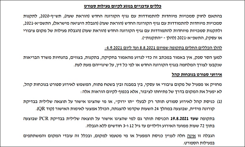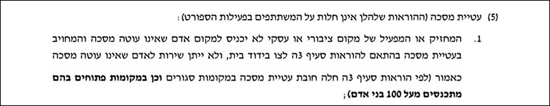 בנוגע לחובת עטיית מסכה – בכל מגרש שבו מתכנסים מעל 100 איש ישנה חובה על עטיית מסכה.