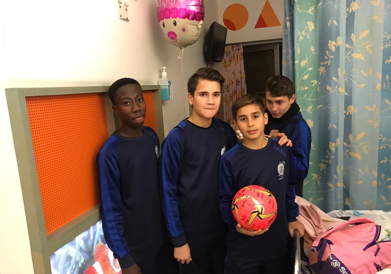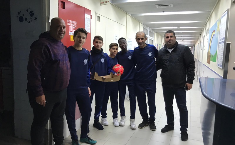 שחקני הקבוצה חילקו כדורי רגל וסופגניות למאושפזים ובני משפחותיהם (מוחמד מוסא)