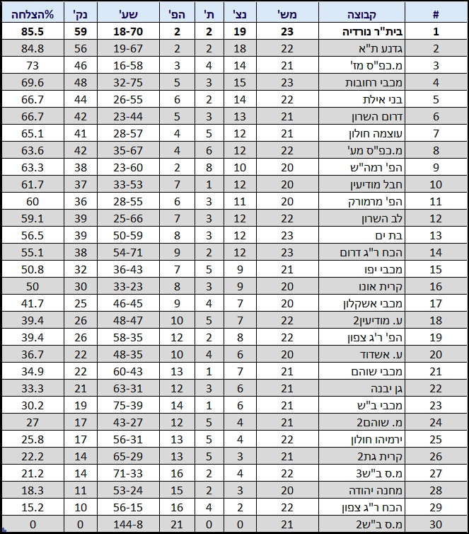 | 19 | 20/4/24 | קרית אונו-הכח ר"ג צפון | - |