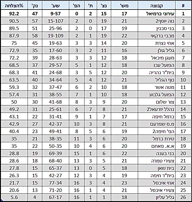 | 18 | 12/4/24 | נהלל יזרעאל2-גליל עליון | 1-6 |