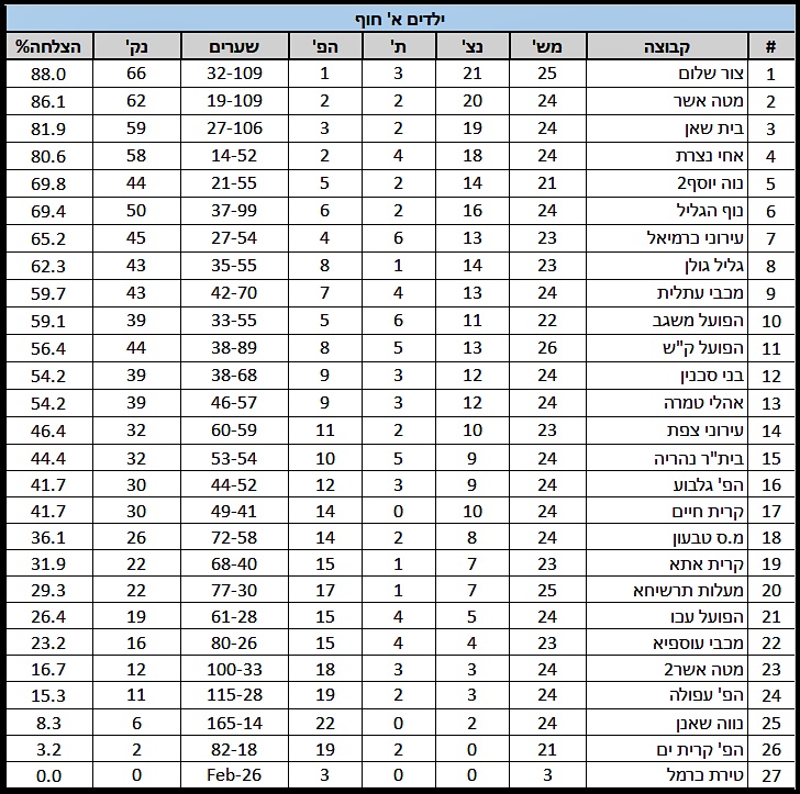 | 26 | 04/05/2023 | צור שלום-נווה שאנן | 1-13 |
