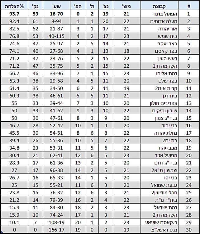 | 6 | טרם נקבע | קרית אונו2-באר יעקב | - |