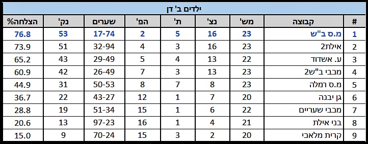 | 15 | ט.נ | גן יבנה-בני אילת | - |