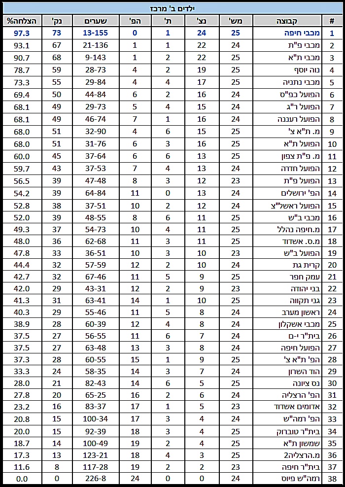 ילדים ב' מרכז 22-23 טבלה משוקללת