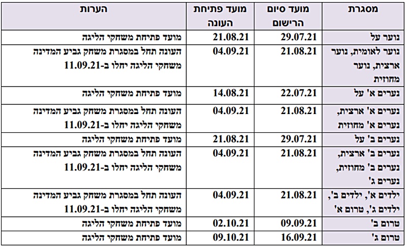 ההתאחדות פרסמה את לוחות הזמנים לרישום ופתיחת עונה 21-22