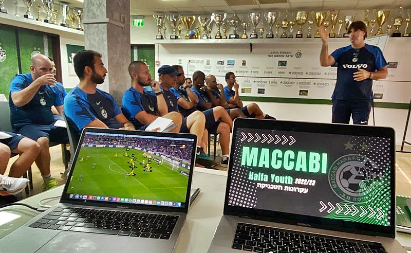 צוות מאמני מחלקת הנוער בליווי עפר פביאן המנהל המקצועי של מכבי חיפה