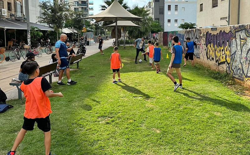 כחלק מהמחווה לילדי הדרום, שלח אתמול מועדון מכבי ת״א מספר מאמנים ממחלקת הנוער לקיבוץ כרמיה במועצה האזורית חוף אשקלון כדי לשמח את ילדי המקום ולעזור להם לחלץ עצמות לאחר הישיבה הממושכת בממ״ד.