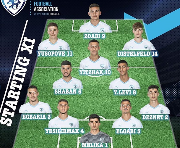 הנבחרת עלתה בהרכב הבא: אופק מליקה; גיא דזנט, פארס אגבאריה, מאור ישילרמק (C), שביט אלגבי, לואי שעבאן , ינאי דיסטלפלד, ירין לוי, רואי יצחק, יאן יוסופוב, כארם זועבי.